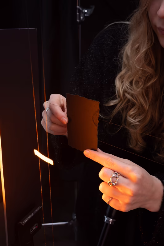 This is the second piece in our abstract series. A large, solid form is being infiltrated by something small and distinctly different. If you follow the series' overarching theme, the black paper could symbolize a person, while the glowing object might represent an idea, someone’s words, or perhaps an unexpected influence. This work delves into the intriguing question of what truly defines us—what is inherent, and what has emerged from external influences.