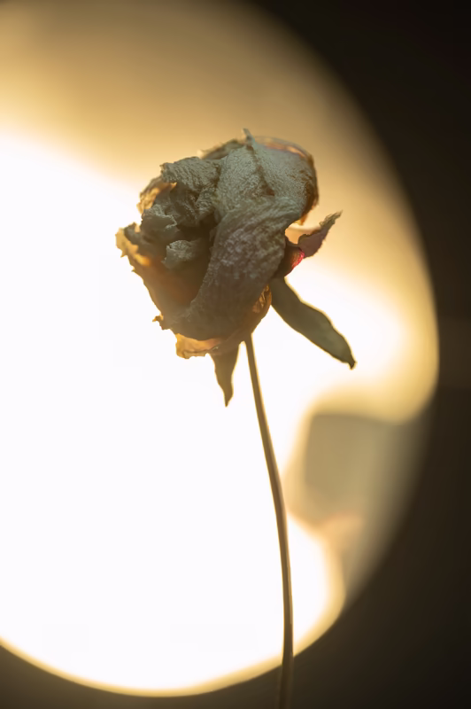 A wilted flower in a space flooded with the merciless heat of the sun. The sensation of heat fills every remaining perception. Nothing is left other than it. Only a one-on-one encounter between a star and a flower.