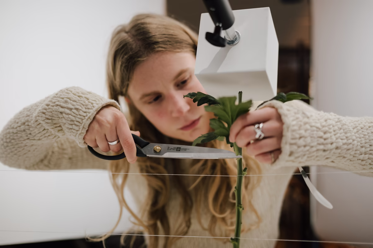 From the very beginning, one of our initial ideas was to utilize white cubes. Our intention was to highlight the imperfect yet perfect beauty of flowers by contrasting them with the cold, precise form of white cubes. This led us to purchase several wooden cubes from a nearby art supply store, which we then meticulously painted with white acrylic to achieve a perfectly smooth, flat surface. This task was more challenging than we anticipated, but the result was quite satisfying. Interestingly, we didn’t use the cubes for a while after that, though they have since become a common element in our sketches. They often symbolize something cold and lifeless—but not in this case! :)