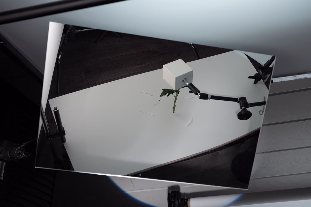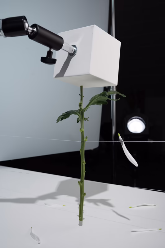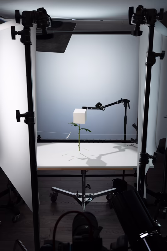 Our goal is to minimize retouching as much as possible. One of our main techniques to achieve this is using threads to secure various objects. However, this method doesn't work with heavier items, such as wooden cubes. In those cases, we rely on more robust fixtures, which we later remove during post-production.